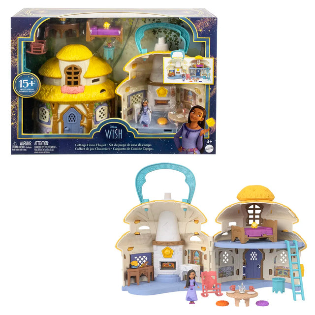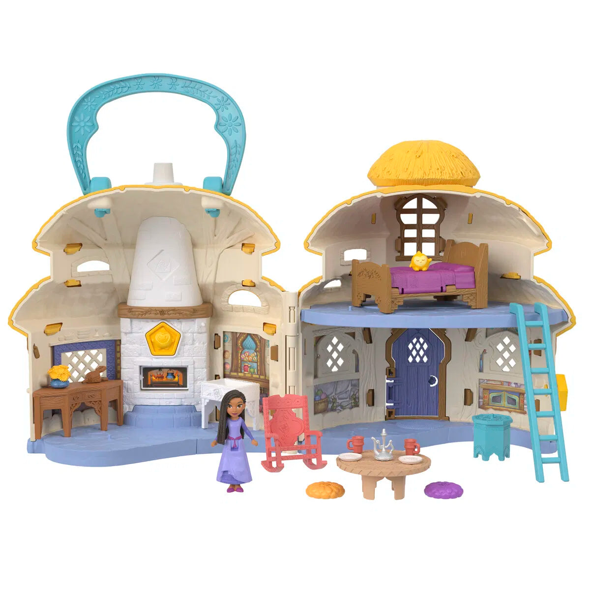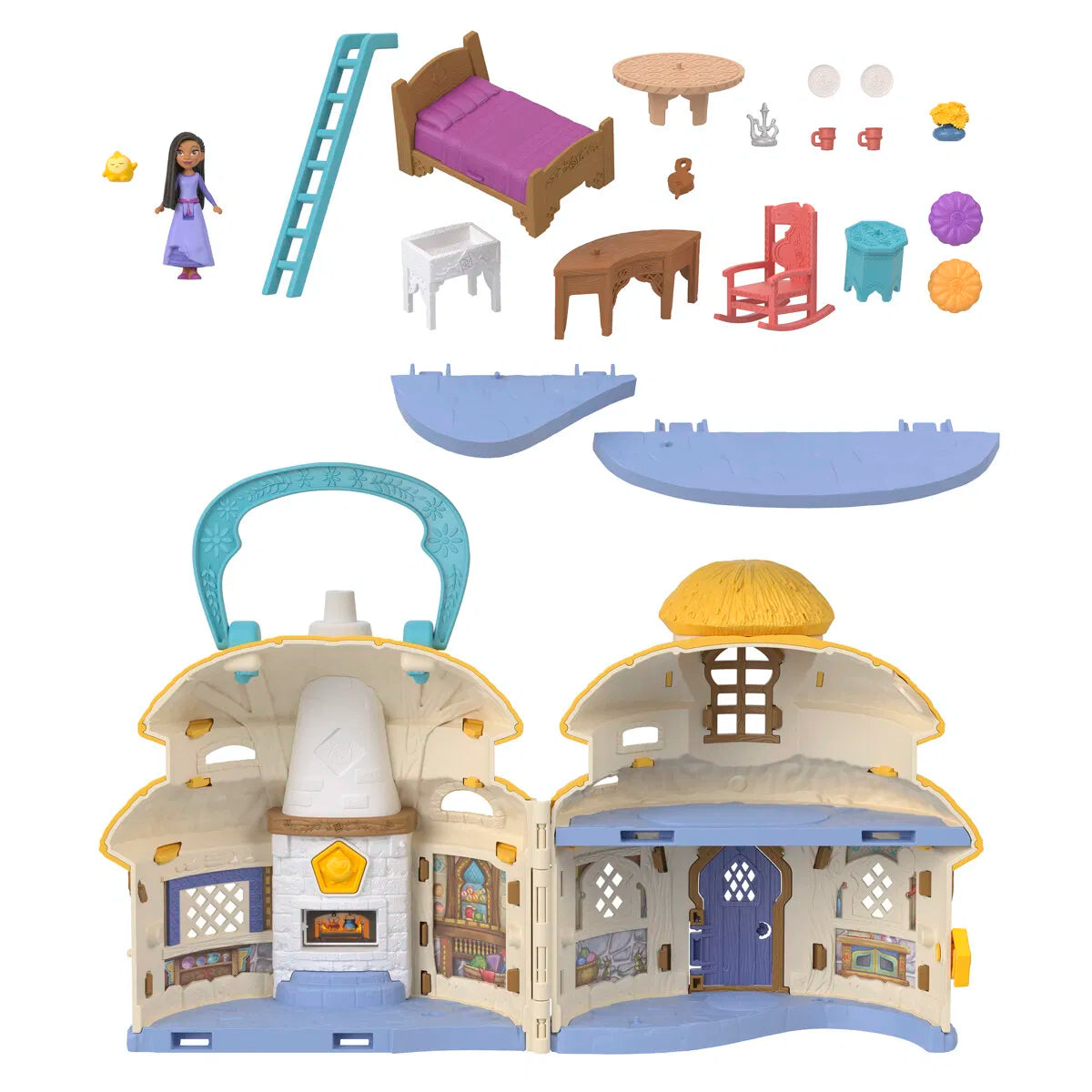 Børn kan bruge deres fantasi, når de træder ind i dette dukkehus-legesæt og i Disneys Ønsket. En Asha af Rosas-mikrodukke, Star-figur og mere end 15 ekstra stk. tilbehør opfordrer børn til at genskabe historierne i hyttelegesættet. Åbn døren for at afsløre to etager, som kan fyldes med møbler og andre tilbehørsdele, der kan bruges til at genskabe filmøjeblikke eller helt nye eventyr. Ashas seng kan foldes ud, og tilbehøret kan opbevares i hytten. Legesættet har et håndtag, så det kan tages med på farten, og det indeholder hjertet og morskaben fra den animerede filmmusical. Dukken kan ikke stå af sig selv. Farver og mønstre kan afvige fra det viste. Fra 3 år.