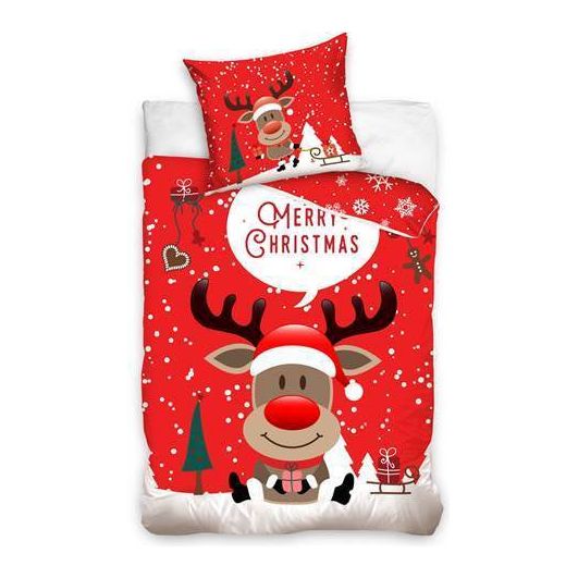 Julesengesæt senior 100% bomuld "Rudolf med den røde tud" 140x200 cm