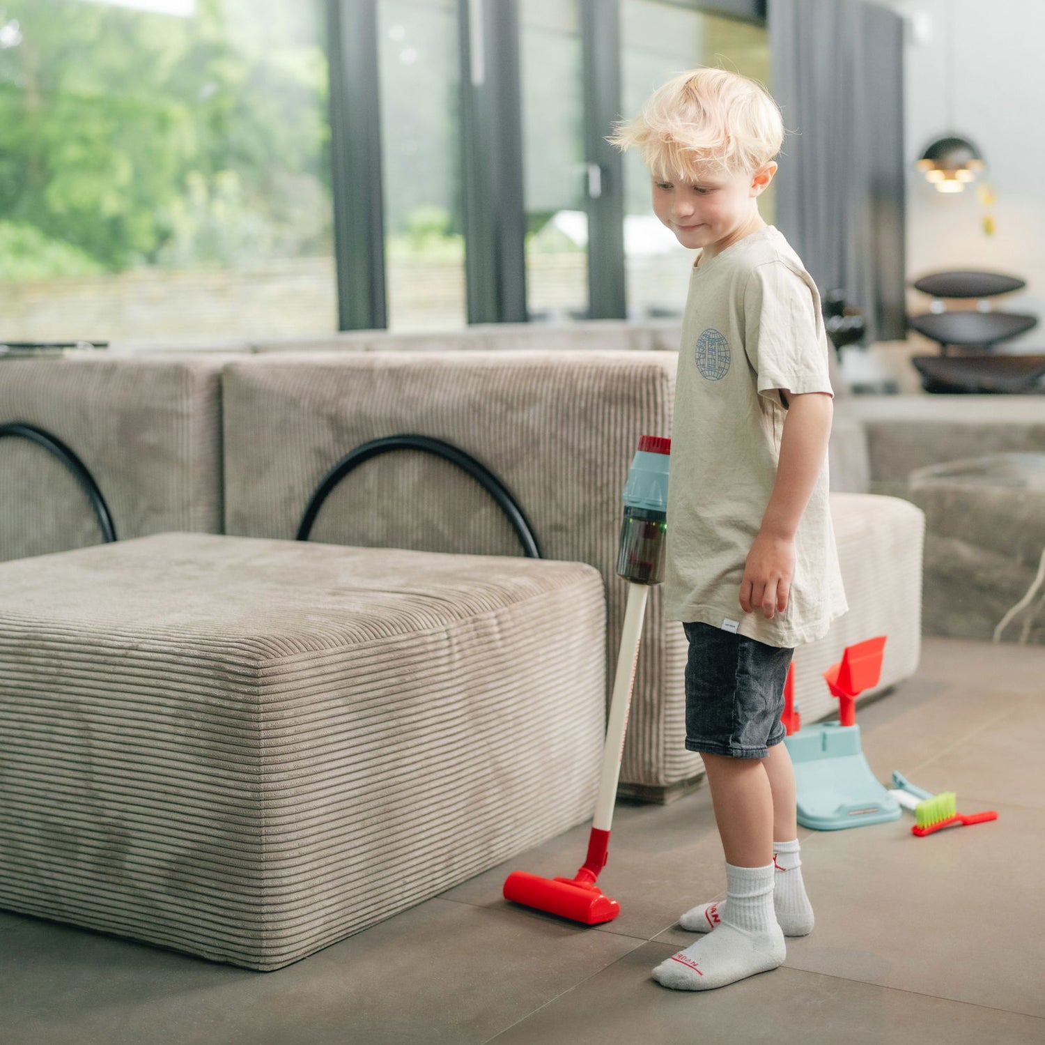Lad børnene danse og synge, mens de "rydder op" i huset med deres egen legetøjsstøvsuger.