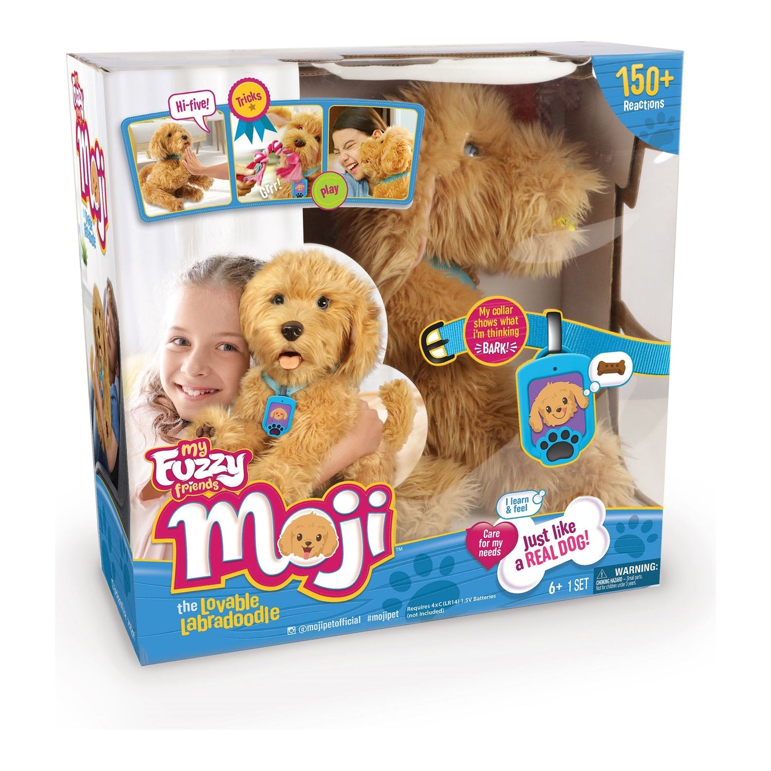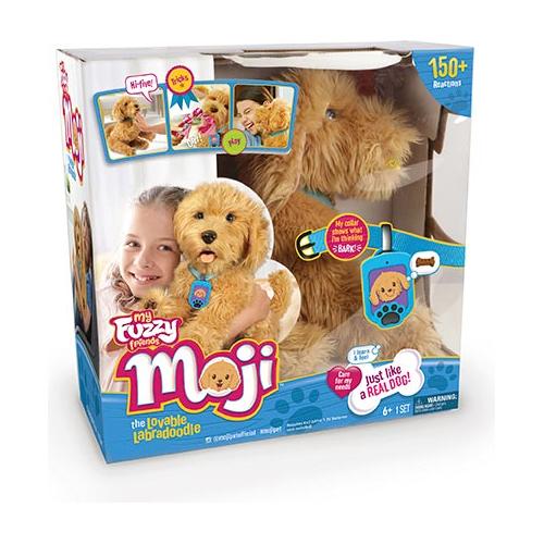 Moji er en elskelig interaktiv Labradoodle med mere end 150 interaktioner. Moji kan lave masser af tricks og reagerer ved berøring og kommandoer.