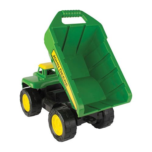 Stor John Deere Dump Truck er ideel til udendørs sandkassespil og har en let vippehandling og rullende hjul til enkel transport.