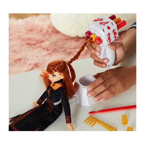 Opret smukke fletninger på Anna fra populære Frozen 2! Anna har en sort/lilla kjole på, og hun har ekstra langt børsteløst blondt hår. Legetøjet leveres også med et mekanisk hårflettningsværktøj til dukken uden batterier, der kræves til at fungere. Stil Anna dukkens hår i få trin: Klip dukken i bunden. Brug kammen til at adskille håret i 3 tråde. Indsæt krogen i flettet, og løb derefter en hårstreng ind i krogen. Træk igennem, indtil du ser hår komme ud i den anden ende. Løft tunge fra bunden. Tryk gentagne gange på knappen for at flette og træk langsomt dukken væk for at se hendes hår vride sig til en fletning. Gentag for at skabe en frisure fuld af smukke fletninger. Opret mere opfindsomme frisurer med de seks elastikker, to hårklips tilbehør og kam. Børn kan se efter Disney Frozen Sister Styles Anna-dukken med flettet hår (sælges separat; afhængigt af tilgængelighed) for at lade som om de er en frisør for deres yndlings søster duo! Ophavsret Disney. Hasbro og alle relaterede vilkår er varemærker tilhørende Hasbro.