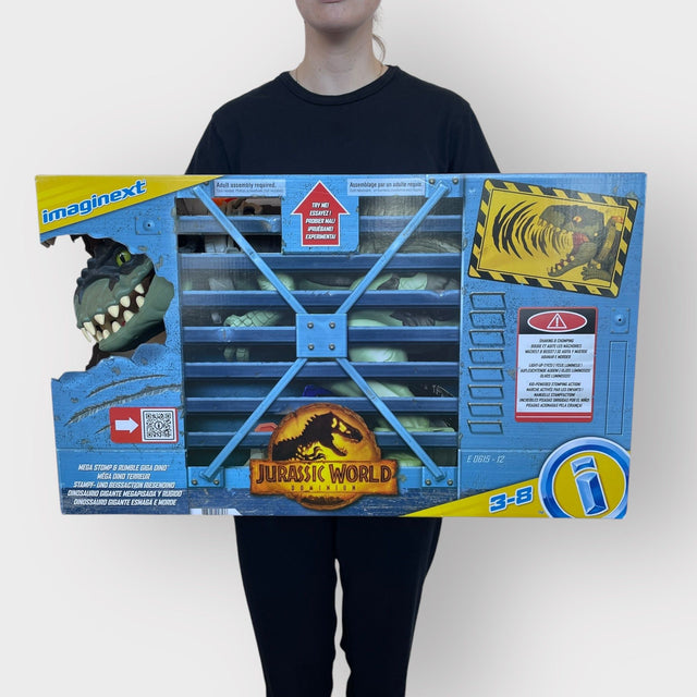 Børn kan brøle ind i episke Jurassic World™-eventyr med Imaginext® Mega Stomp & Rumble Giga Dino™-legetøjet fra Fisher Price®.Med voldsomt oplyste øjne, fantastisk hovedtæsk og trampende action og et superhøjt brøl, der får hele hendes krop til at ryste, er denne gigantiske Giga-dinosaur fuldt børnekontrolleret til at bringe alle deres Jurassic World™-historier til live.Børn kan rulle dinoen frem for at bryde hende fri fra kæden og se hende trampe og brøle efter Owen!