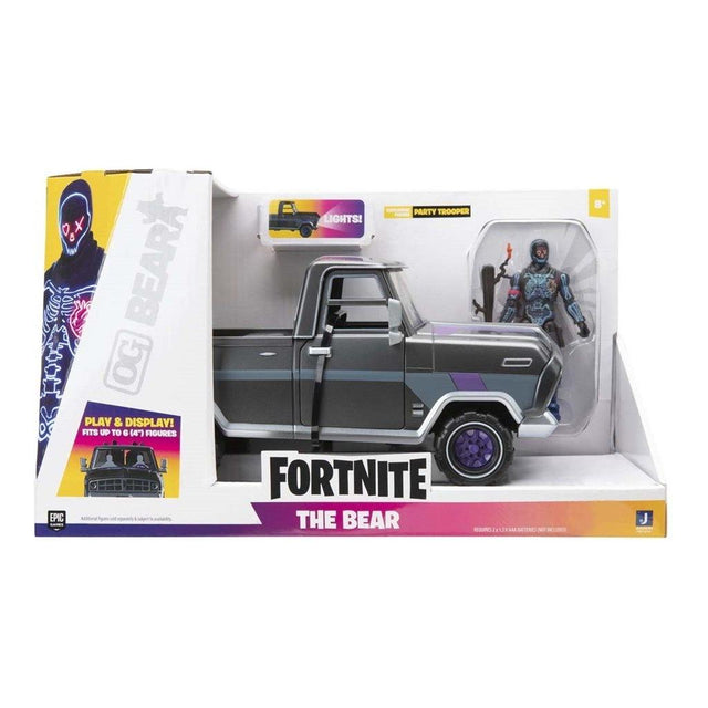 Uanset om du er uden for alfarvej eller følger vejen, vil Bear 4x4 få dig derhen, hvor du skal være! Blink med de fungerende LED-forlygter for at styre festen og blænd fjendens tropper til deres forestående undergang. Lad dine holdkammerater køre med på forsædet eller ladet og skab kaos i rækkerne af køretøjer! Bear 4x4 inkluderer en Party Trooper-figur med et Bash Burner-værktøj, men lad ham ikke være alene - saml i stedet resten af Jazwares Fortnite-figursamlingen for at sikre din suveræne sejr! Fra 8 år.