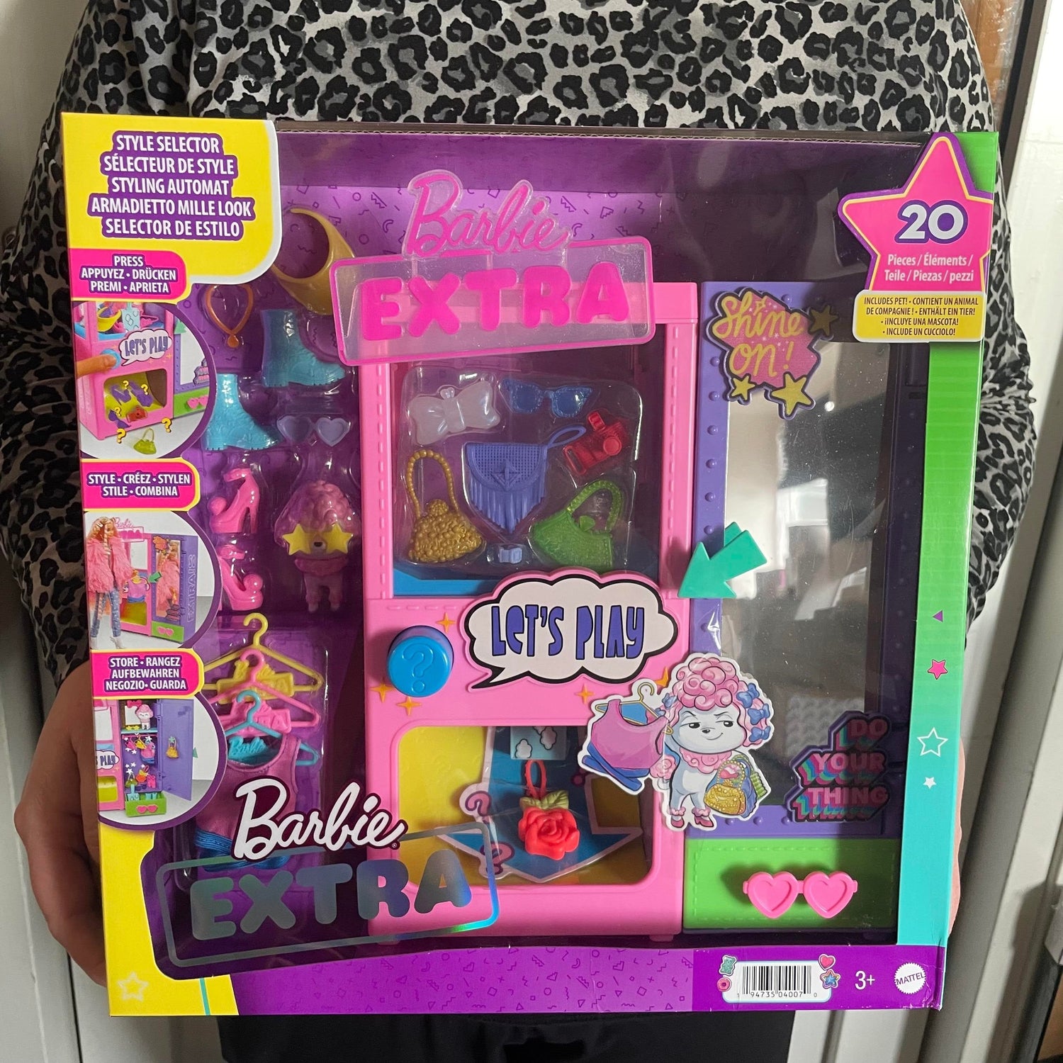 Løft ethvert Barbie®-look til et nyt niveau med Barbie® Extra-modelegesæt med skab og overraskelse, der gør mode sjovt med et væld af overraskende tilbehør! Ved et tryk på en knap overrasker tøjskabet modeelskere med ekstravagant tilbehør – du ved aldrig på forhånd, hvilket modetøj skabet vælger til dig! Derefter kan du mikse og matche og gøre uendeligt mange EXTRA-ordinære looks til virkelighed. Legesættet indeholder et glamourøst tøjskab med et område til styling af kæledyr, et spejl i dukkens størrelse, skuffeopbevaring og en stjerneformet knage til opbevaring af modetøj og tilbehør. Børn kan style deres Barbie®-dukker (sælges separat) med masser af sjovt tilbehør inklusive seks håndtasker, to par solbriller, en modetop, glamourøse smykker og meget mere! Puddelhunden er også totalt Extra med sløjfedetaljer i pelsen og stjerneformede solbriller. Med så meget sjovt modetilbehør kan børn slippe deres indre trendsætter løs og style deres dukker med uendeligt mange EXTRA looks! Dukker sælges separat. Farver og mønstre kan variere.