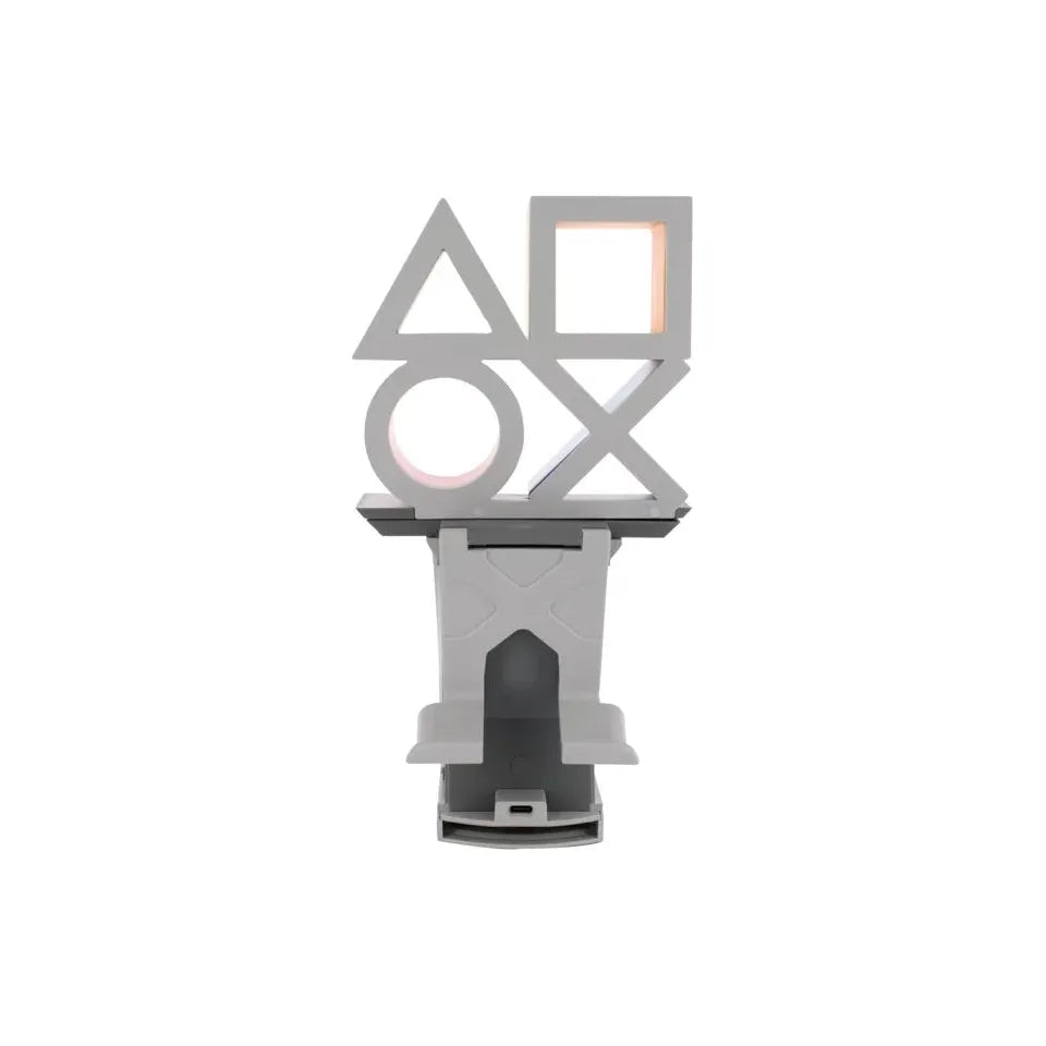Dette forbløffende oplyste design bringer liv til et af de mest ikoniske spilsymboler og fremhæver PlayStation-symbolerne i en levende blå, sat oven på en oplyst hvid central søjle, som kan prale af vores unikke, patenterede R.E.S.T. system, klar til at holde alt fra din controller til din mobiltelefon og mere.