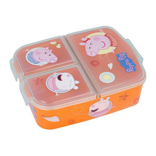 Original og praktisk sandwichboks med rum, så børn kan tage deres snack med i parken, i skole eller på enhver udflugt hjemmefra. Fremstillet af modstandsdygtigt materiale, vil det modstå utilsigtede fald og stød ved daglig brug, og da det er dekoreret med attraktive designs baseret på hovedpersonerne i deres yndlingsserier, vil det gøre de små glade for at tage det med sig, uanset hvor de går og endda bruger det til at opbevare og transportere deres små legetøj.