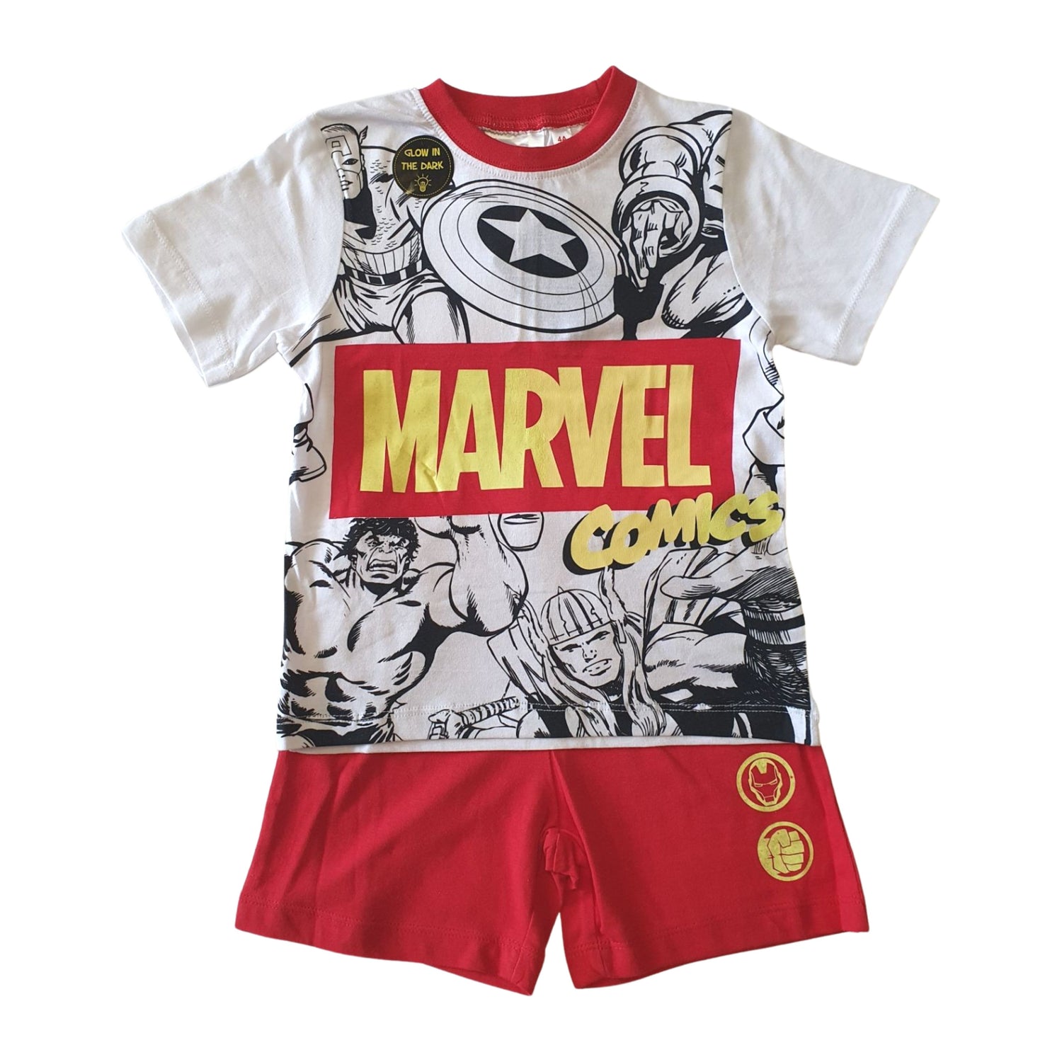 Sejt sommersæt med Marvels Avengers heltene på. Tøjet lyser også i mørket.