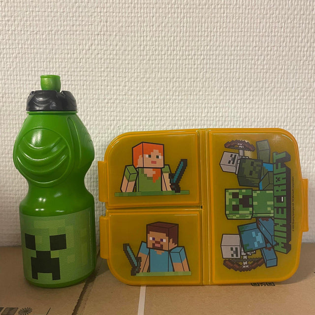Sættet indeholder Minecraft drikkedunk og 3-delt premium madkasse