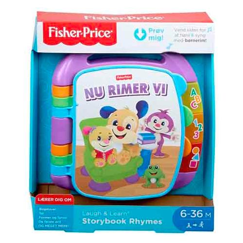 Åbn for en verden af leg og læring for dit barn med denne Laugh & Learn®-bog med rim og musik. Når du bladrer i bogen aktiveres barndommens yndlingssange, såsom "Klappe-klappe-kage" eller "Ro, ro, ro din båd", illustreret med farvestrålende tegninger med Hundehvalp og Sis. Og når du og dit barn hopper med i takt til musikken, lærer barnet om at tælle, de første ord, bogstaver, tal, former og meget andet. Det praktiske bærehåndtag gør, at du kan tage bogen med, uanset hvor du og dit barn skal hen. Where early academics come into play™ Tal og bogstaver: Når barnet trykker på de lysende ABC- og 123- knapperne, kan det høre bogstaver og tal, som passer til de forskellige sider, og det lærer, hvor sjovt det er at læse! Farver og former: Med et enkelt tryk på de lysende former- og farver-knappen, kan dit barn høre vendinger, som lærer det om de forskellige farver og former, det ser.Med barnets kæreste Laugh & Learn®-venner, inklusive Hundehvalp og Sis6 klassiske børnerim, som dit barn kan lytte tilBarnet lærer at tælle, de første ord, bogstaver, tal, former og meget andet.3 lysende knapper om bogstaver, tal og formerSiderne, som er nemme at vende, udvikler finmotorikkenHåndtaget for oven gør den nem at tage med Fra 6 mdr. Batterier (2xAA). inkl