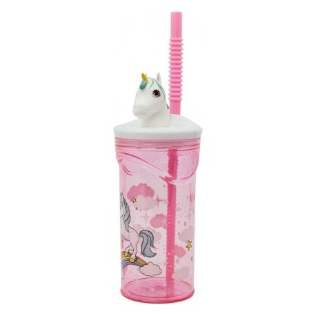 Unicorn 3D krus med sugerør