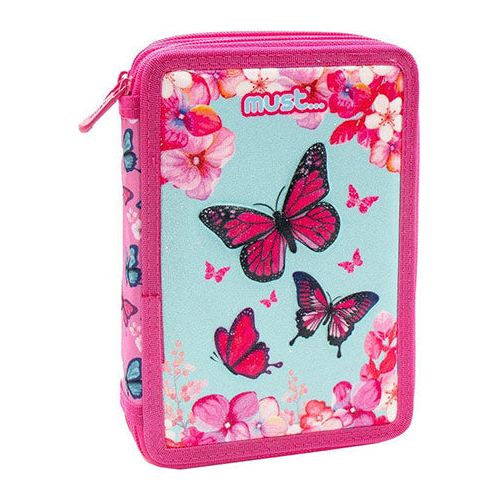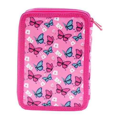 Fyldt 3D Penalhus med glitter og sommerfugle -2 rum
