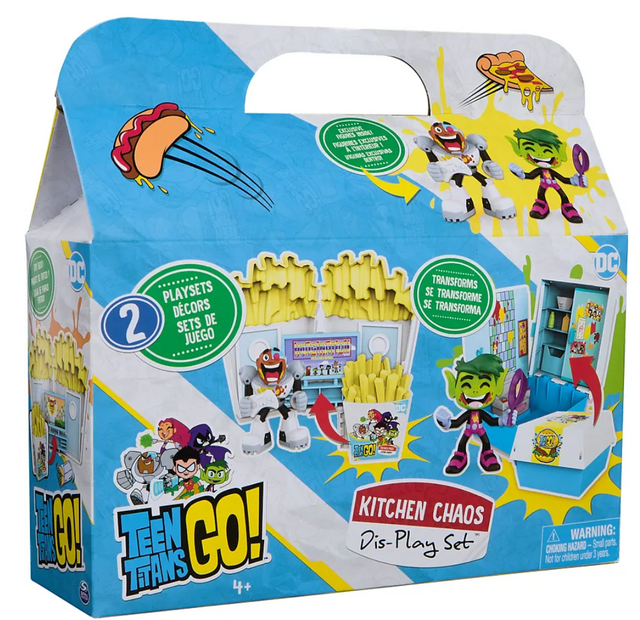 Slip fantasifulde madlavningseventyr løs med Kitchen Chaos Display sættet fra Teen Titans Go! Dette sjove legesæt forvandler en burgeræske til et superhelte-køkken og en tv-station, hvor børn kan se et Teen Titans-videospil. Med figurer af Beast Boy og Cyborg, der er klar til at lave mad eller spille spil, kan børnene finde på deres egne historier. Legesættet har masser af interaktive tilbehør, som gør legen sjov og kreativ. De kan lave æg i køkkenet eller spille videospil med controllerne, mens de bruger deres fantasi. Kitchen Chaos Display sættet hjælper børn med at tænke kreativt og løse problemer, når de integrerer figurerne i deres leg. Det er let at opbevare og tage med på farten, hvilket gør det til et godt valg for børn, der elsker at lege og fortælle historier. Perfekt som gave til fødselsdag eller enhver anden anledning.